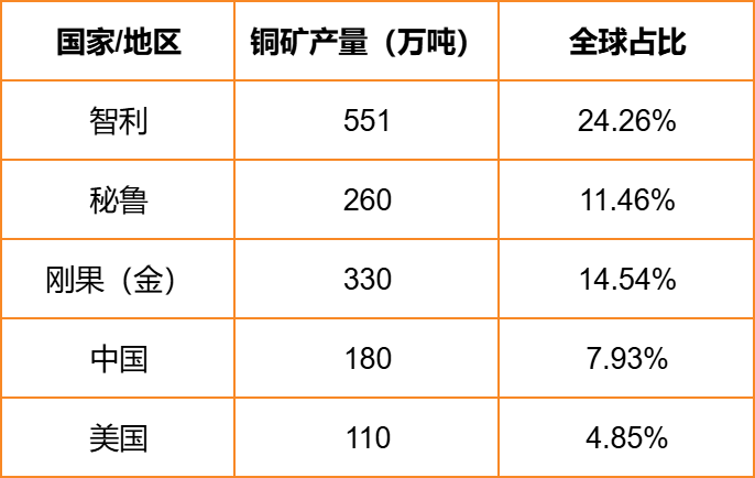 全球铜产量市场分布呈现资源高度集中、区域分化显著的特征,2024年全球铜矿产量约2269.5万吨,主要集中于智利、秘鲁、刚果(金)、中国和美国等国家。