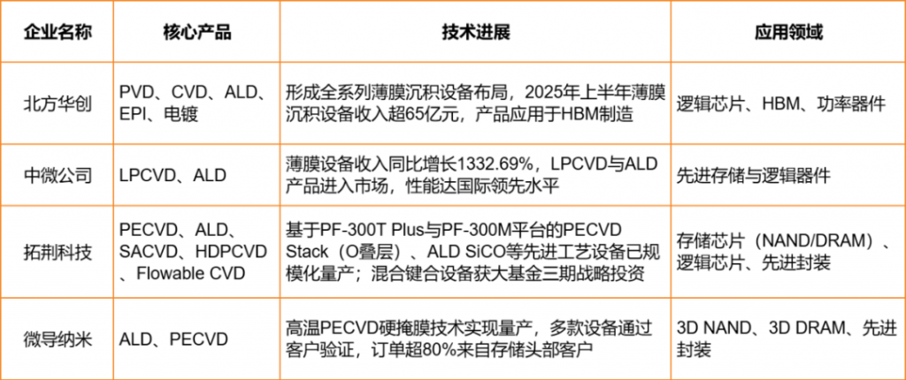 中国企业在薄膜沉积设备领域实现多点突破,北方华创、中微公司、拓荆科技、微导纳米等已深度切入国内外主流晶圆厂供应链。