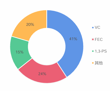 目前常用的电解液添加剂主要有碳酸亚乙烯酯(VC)、氟代碳酸乙烯酯(FEC)、丙烷磺酸内酯(PS)等。其中,碳酸亚乙烯酯(VC)和氟代碳酸乙烯酯(FEC)最为常见,合计占电解液添加剂市场的份额的65%。