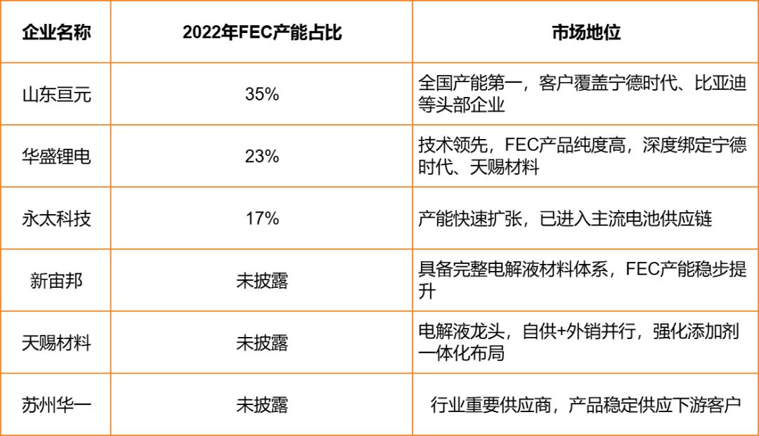 氟代碳酸乙烯酯(FEC)市场集中度较高,头部企业凭借技术与产能优势占据主导地位。根据2022年产能数据,山东亘元以35%的全国产能位居首位,华盛锂电与永太科技分列第二、三位。